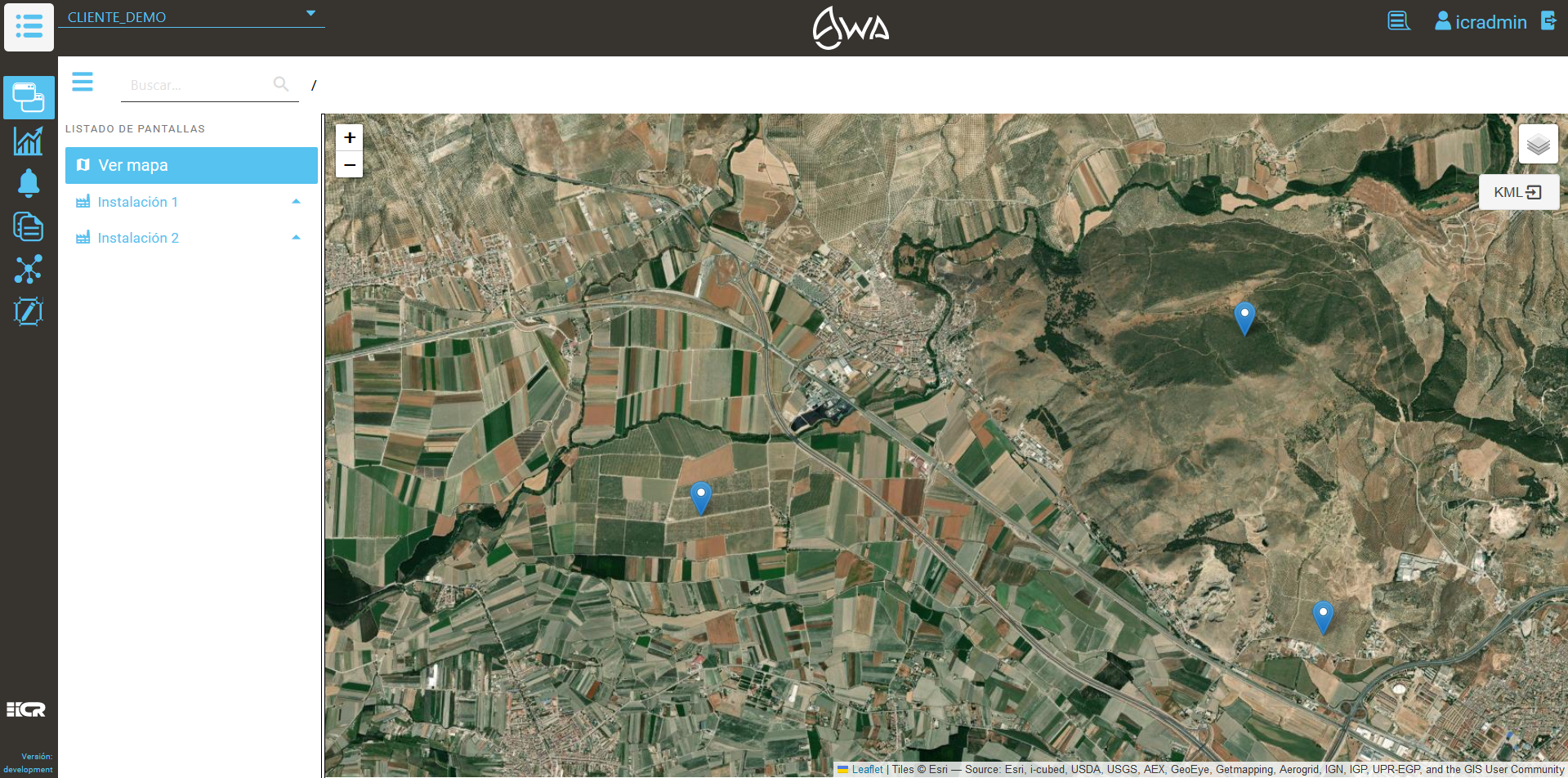 La barra de navegación se encuentra a la izquierda en la pantalla pricipal (Ilustración 4), para desplegar su contenido hay que hacer click en el icono de menú y, a continuación, aparecen las distintas vistas disponibles como Listado de pantallas, Tendencias, Alarmas, etc.