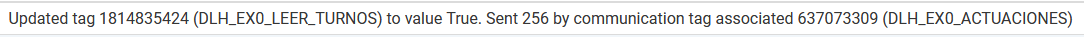 Proporciona un mensaje que indica el ID y nombre del tag modificado y, a continuación, aparece el valor establecido para ese tag.